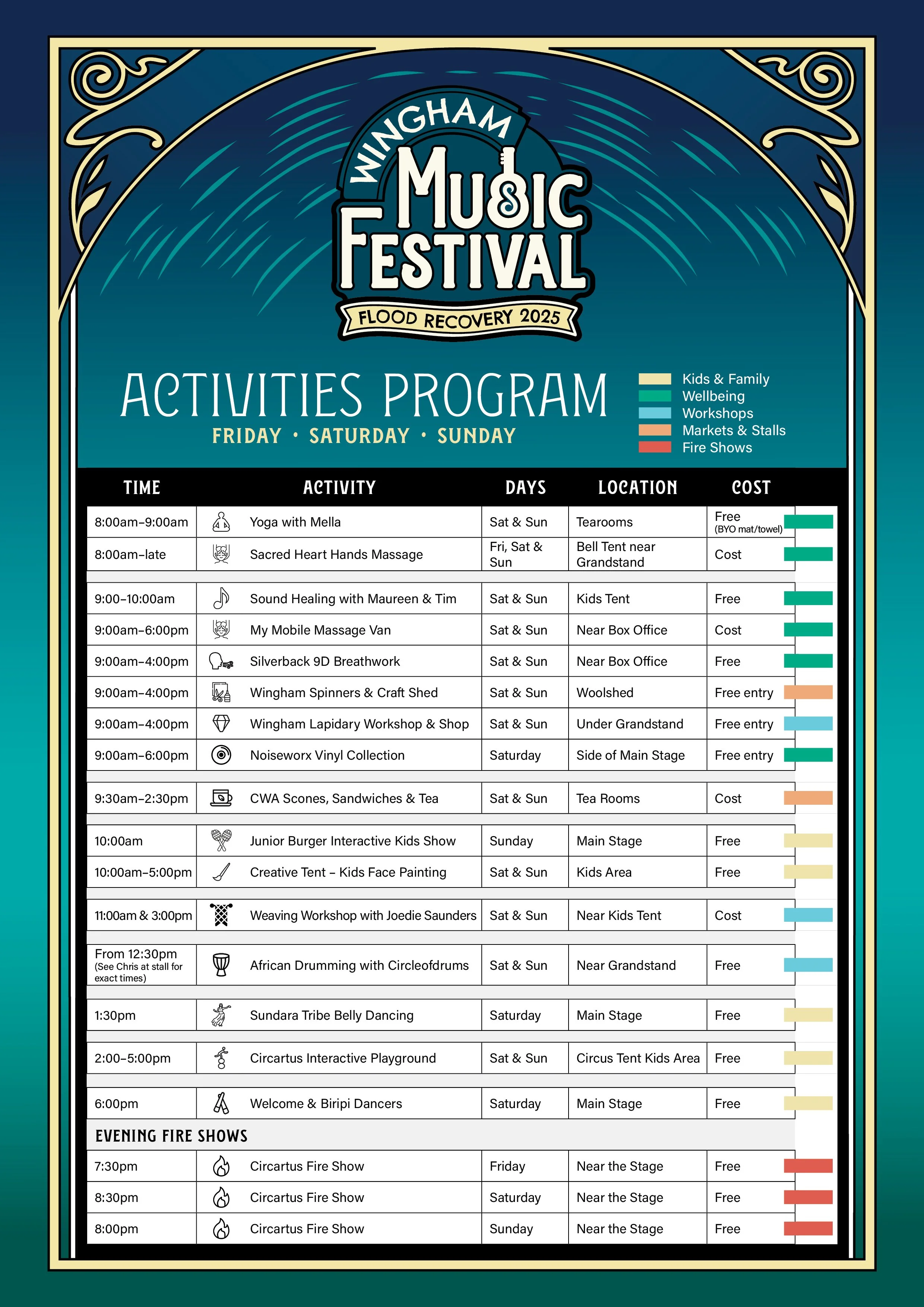 There’s so much to explore at this year’s Wingham Music Festival. From wellbeing sessions and hands-on workshops to kids’ activities, local craft and evening fire shows – your weekend is set.